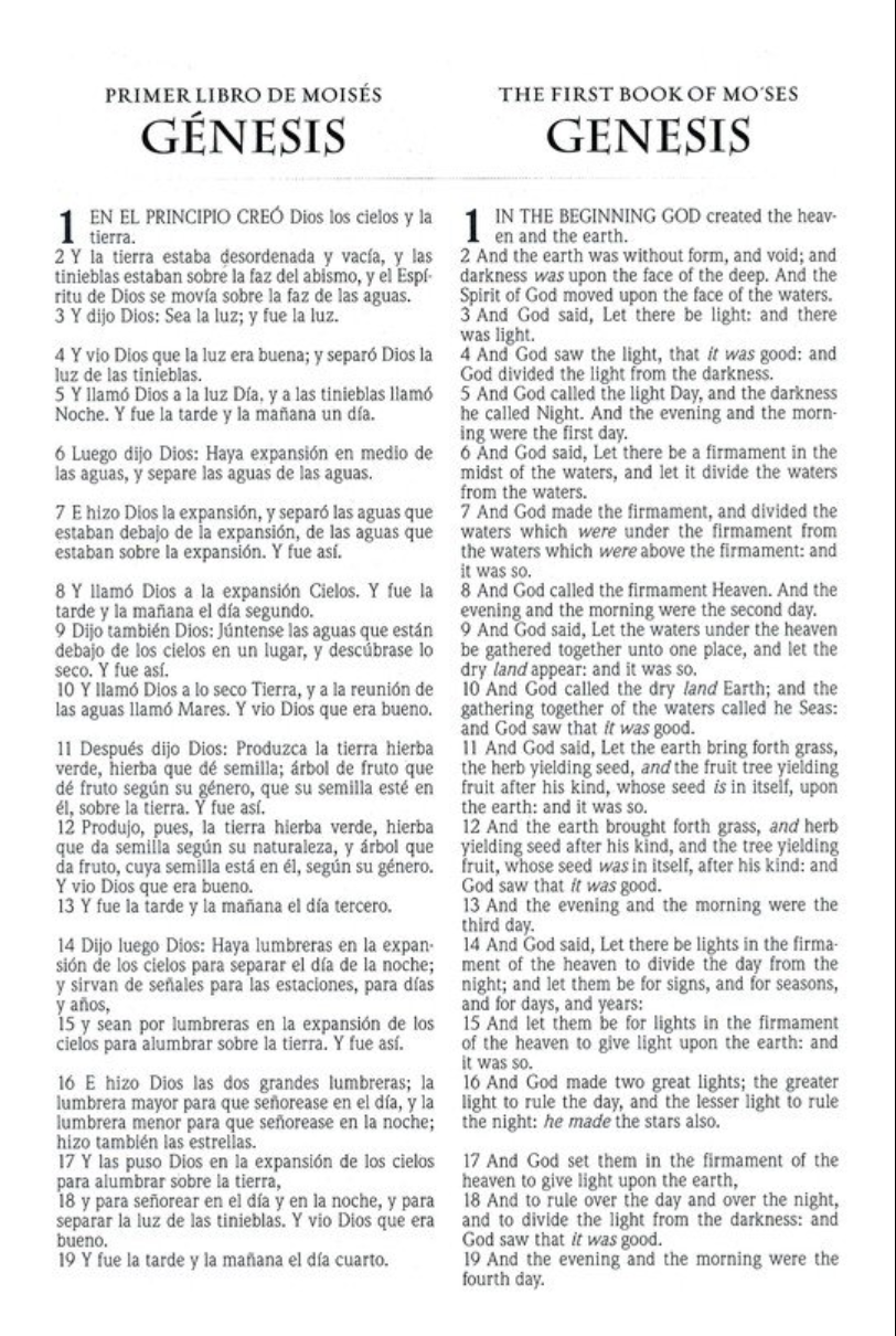 Una Biblia bilingüe, español e inglés, letra grande, que combina toda la elegancia de la Reina Valera 1960 con la belleza poética de la Biblia King James.