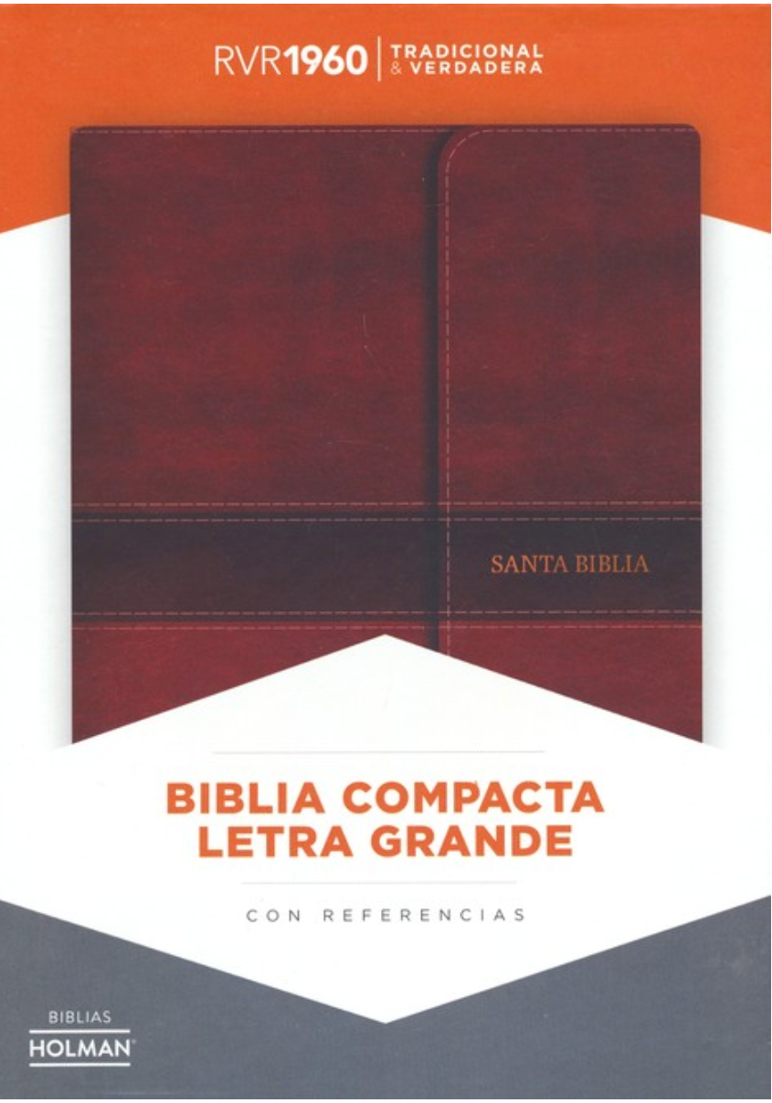 Biblia compacta, letra grande, con referencias en cadena, concordancia temática, palabras de Cristo en rojo, cinta marcadora y mapas a todo color.