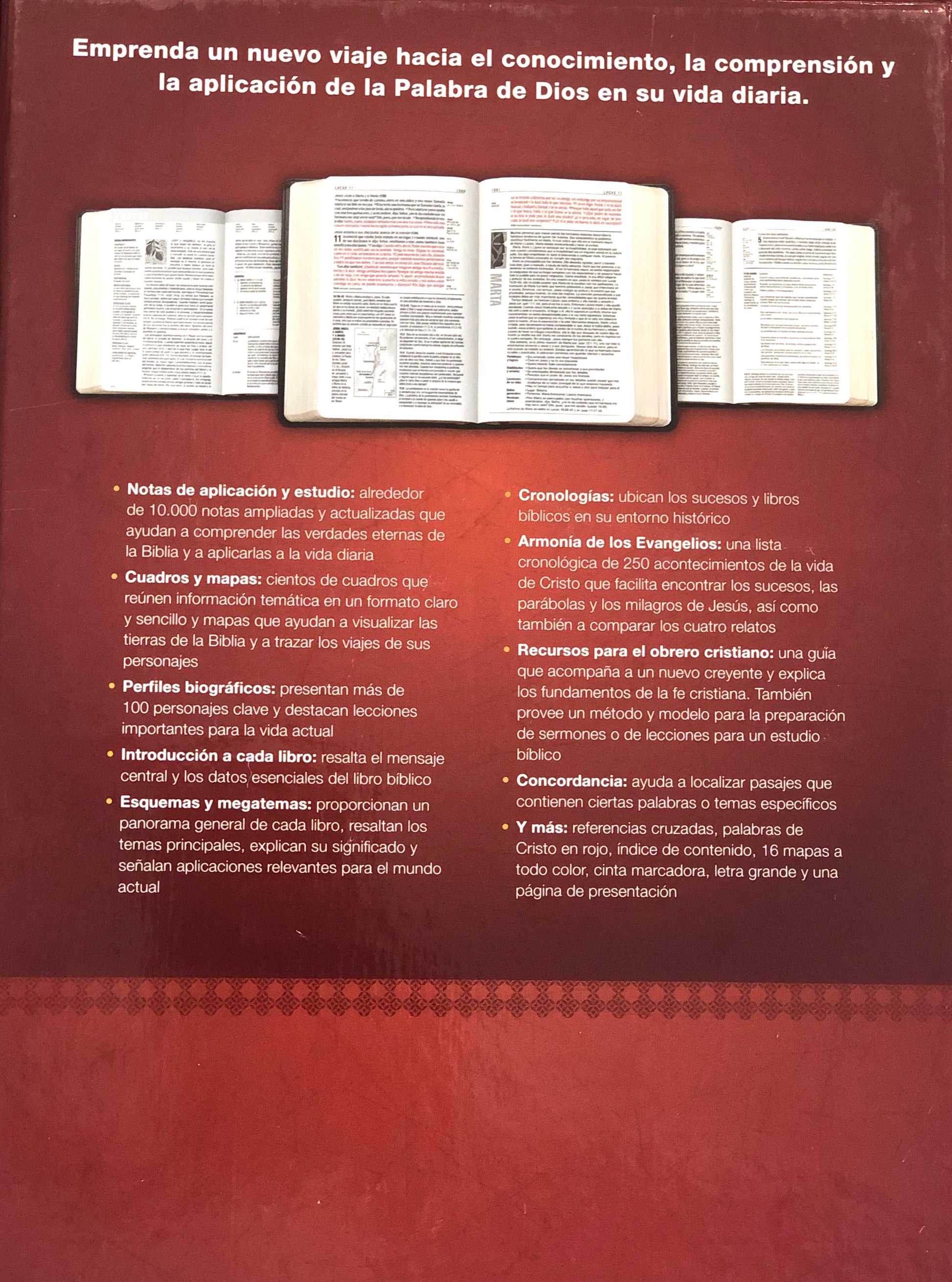 - Y más: referencias cruzadas, palabras de Cristo en rojo, índice de contenido, 16 mapas a todo color, cinta marcadora, letra grande y una página de presentación