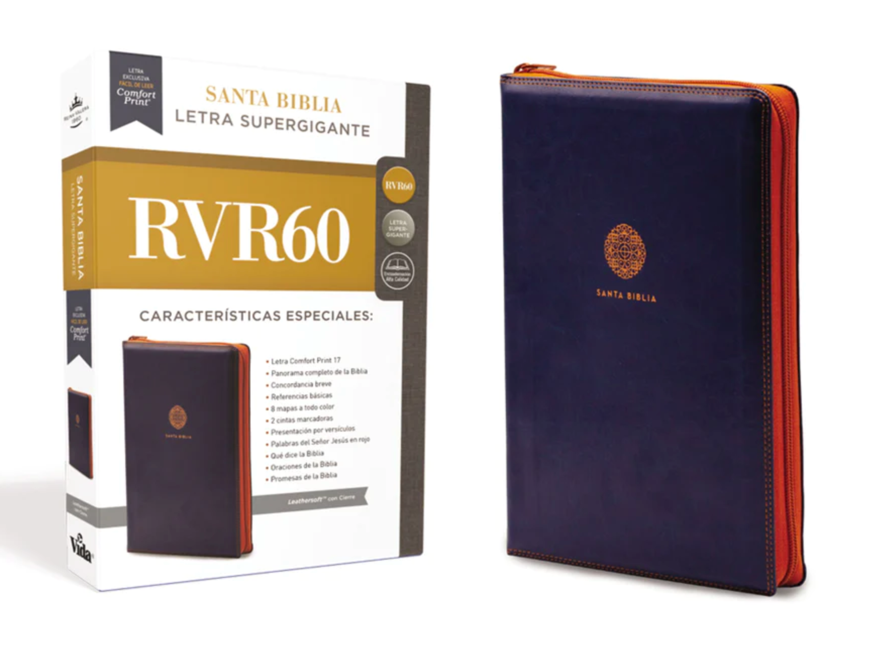 Santa Biblia Letra Super Gigante - RVR60 - Leathersoft Con Cierre Color Azul